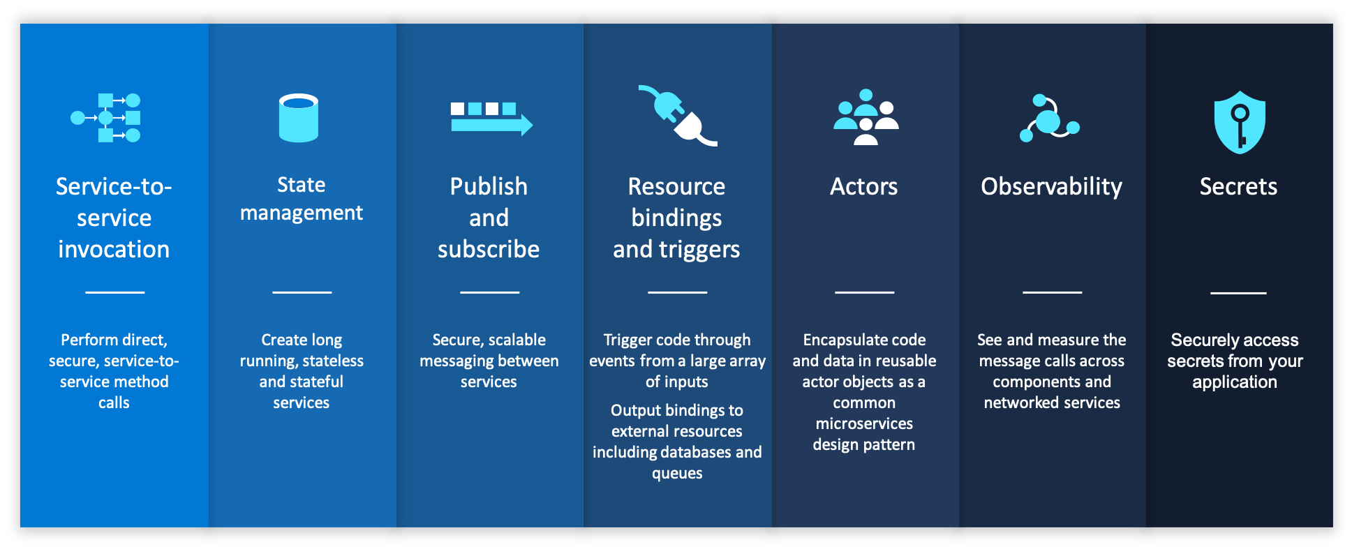 Each of these building blocks is independent, meaning that you can use one, some or all of them in your application. In this initial release of Dapr, the following building blocks are provided: