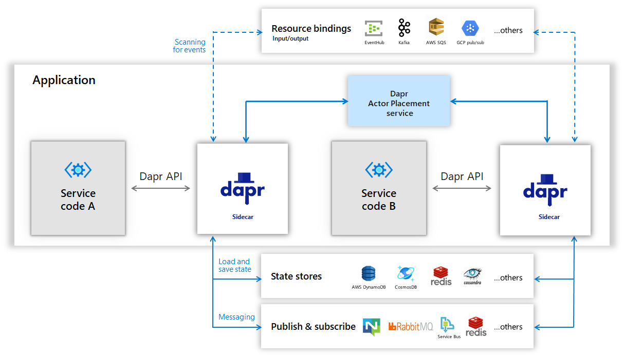 Note: Dapr is language agnostic and provides a RESTful HTTP API in addition to the protobuf clients.