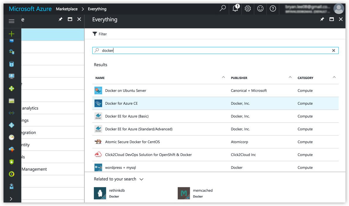 Go to the Microsoft Azure Marketplace and search for Docker, or specifically Docker for Azure CE.