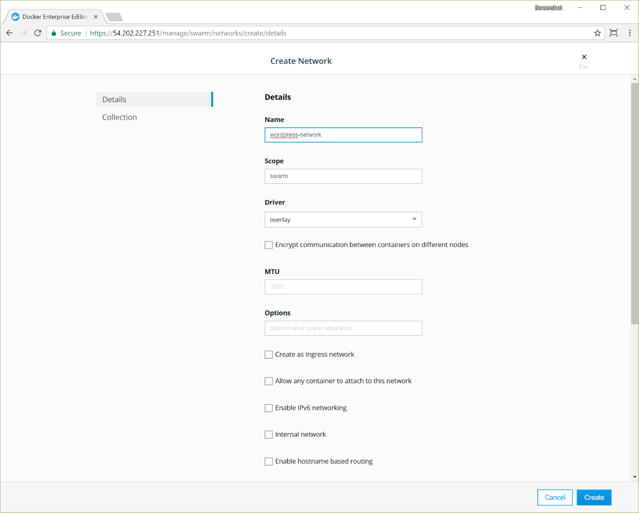 Navigate to the Networks page, and create the wordpress-network with the