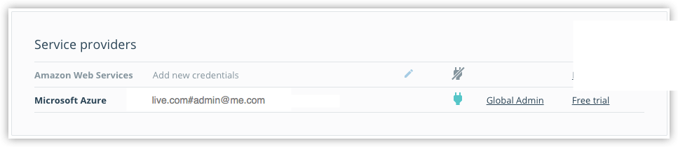 In the Service Providers section, click the plug icon next to Microsoft Azure.