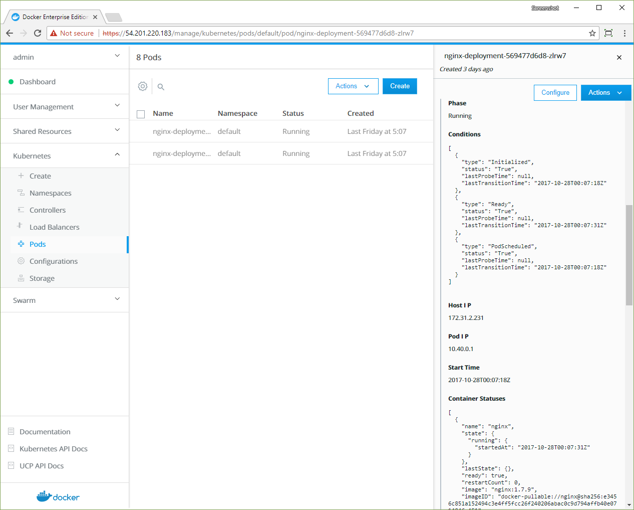 - In the left pane. click Controllers to see the resource controllers that Docker EE created for the NGINX server.