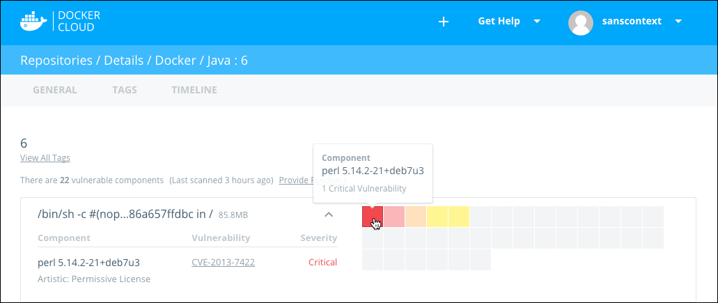 Note: Docker Security Scanning uses an older user interface style on Docker Hub, and will look a little different than the images in this document.