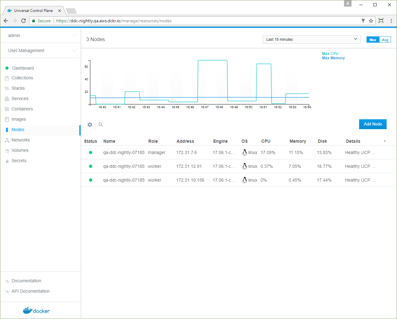 Join more nodes so that you can manage them from UCP. Go to the UCP web UI and navigate to the Nodes page.