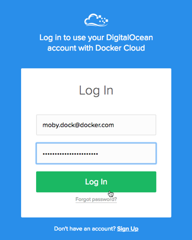 You'll be redirected to a DigitalOcean login screen. Use your DigitalOcean credentials to log in to your account.