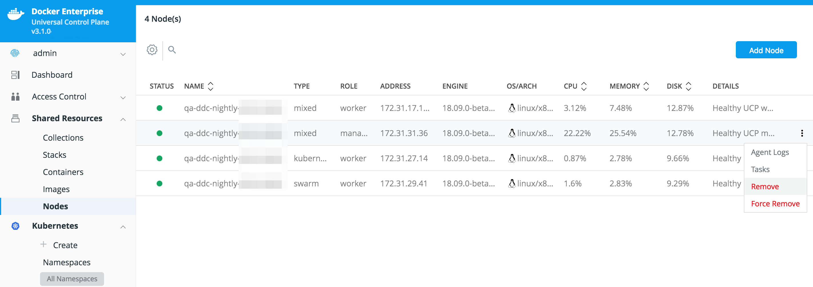 Once you do that, you can start managing your UCP nodes: