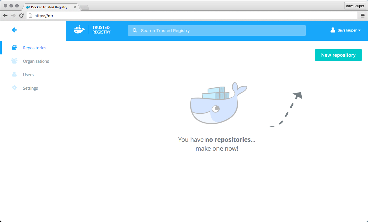 You can also access the DTR web UI, to make sure it is working. In your browser, navigate to the address were you installed DTR.