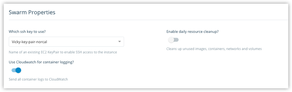• Enable or disable Cloudwatch for container logging.