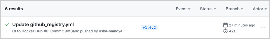 Now, let the workflow run for the first time and then tweak the Dockerfile to make sure the CI is running and pushing the new image changes: