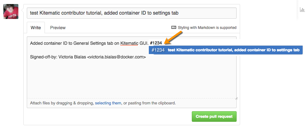 The system creates the request and opens it for you in the kitematic/kitematic repository.