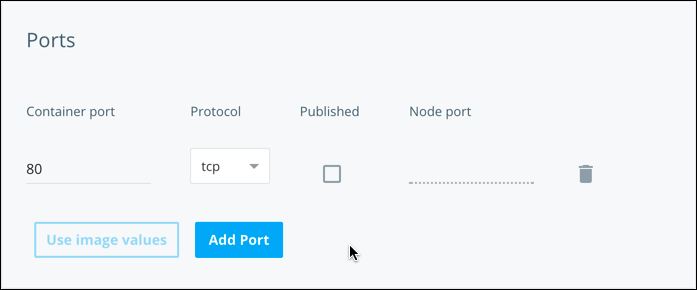 If the image that you are using for your service already exposes any ports, these appear in Docker Cloud in the Launch new service wizard.