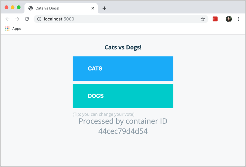To start the application, navigate to the directory containing the example voting application in the CLI and run docker-compose up --build.