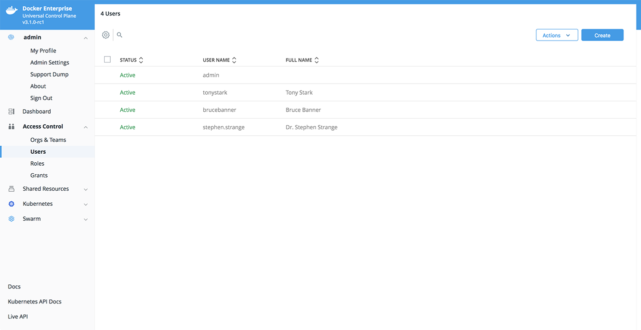 Docker Enterprise has its own built-in authentication mechanism with role-based access control (RBAC), so that you can control who can access and make changes to your cluster and applications. Also, Docker Enterprise authentication integrates with LDAP services and supports SAML SCIM to proactively synchronize with authentication providers. Learn about role-based access control. You can also opt to enable PKI authentication to use client certificates, rather than username and password.