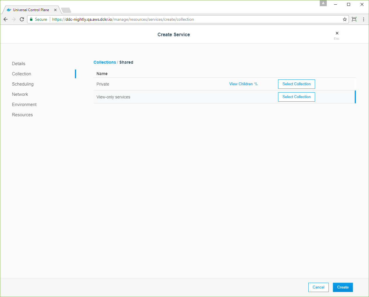 - In the left pane, click Collections, navigate to /Shared/View-only services, and click Select Collection.