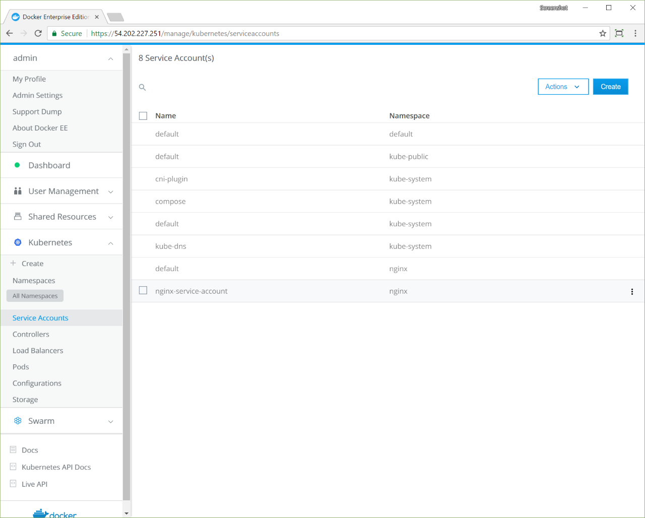 In Docker EE, you give a service account access to cluster resources by creating a grant, the same way that you would give access to a user or a team. Learn how to grant access to cluster resources.