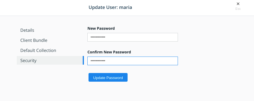 4. Click Edit. Once on the "Update User" view, select Security from the left navigation.