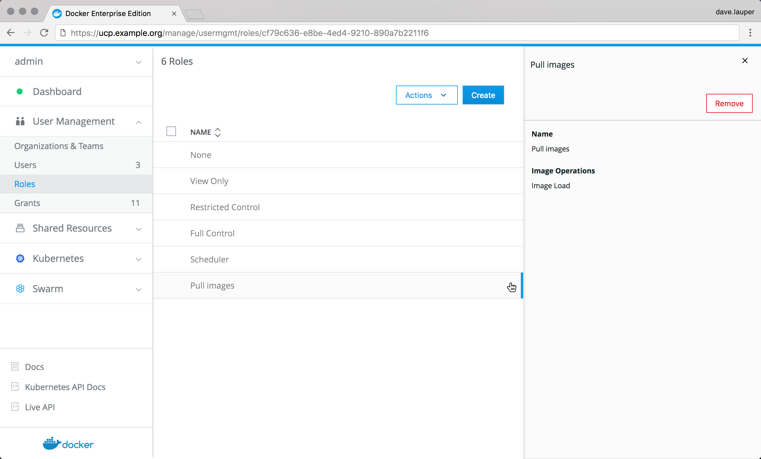 As an admin user, go to the UCP web UI, navigate to the Roles page,