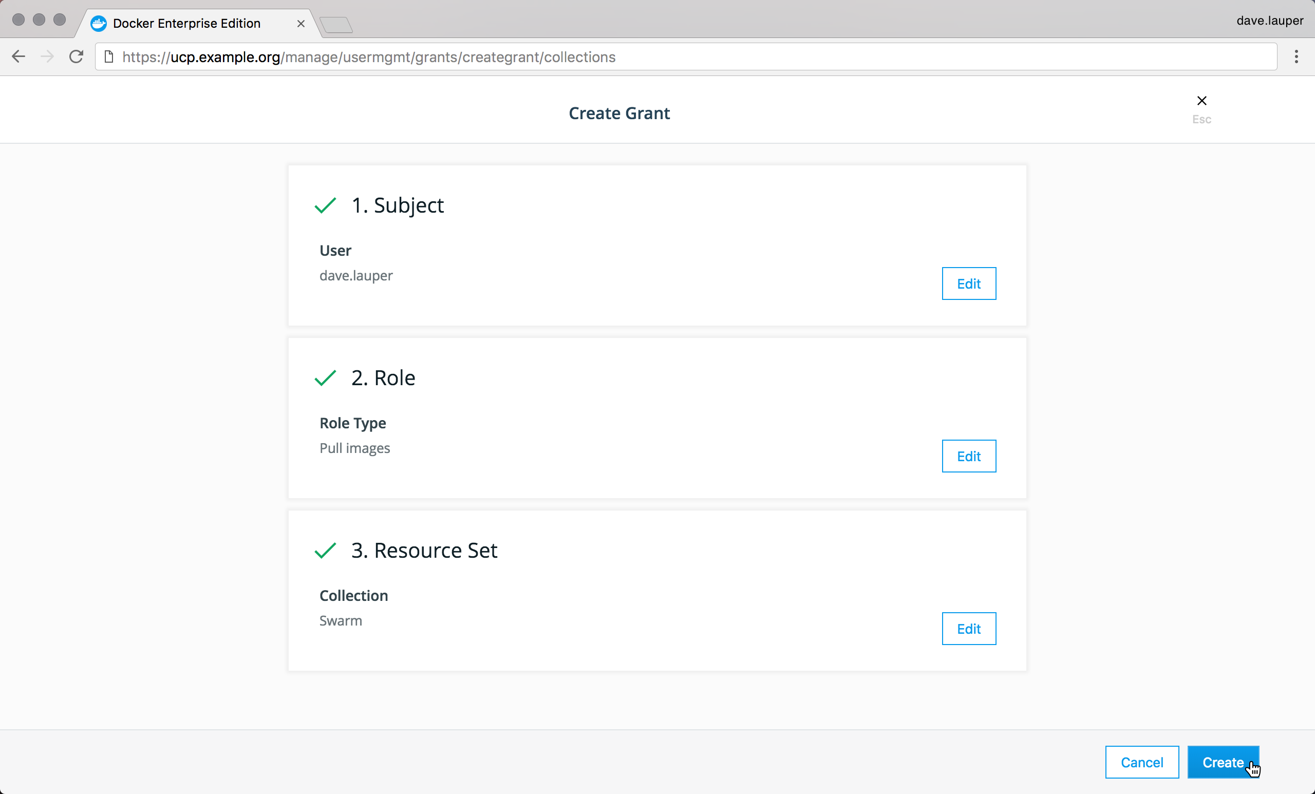 Once you click Create the user is able to pull images from the UCP web UI or the CLI.