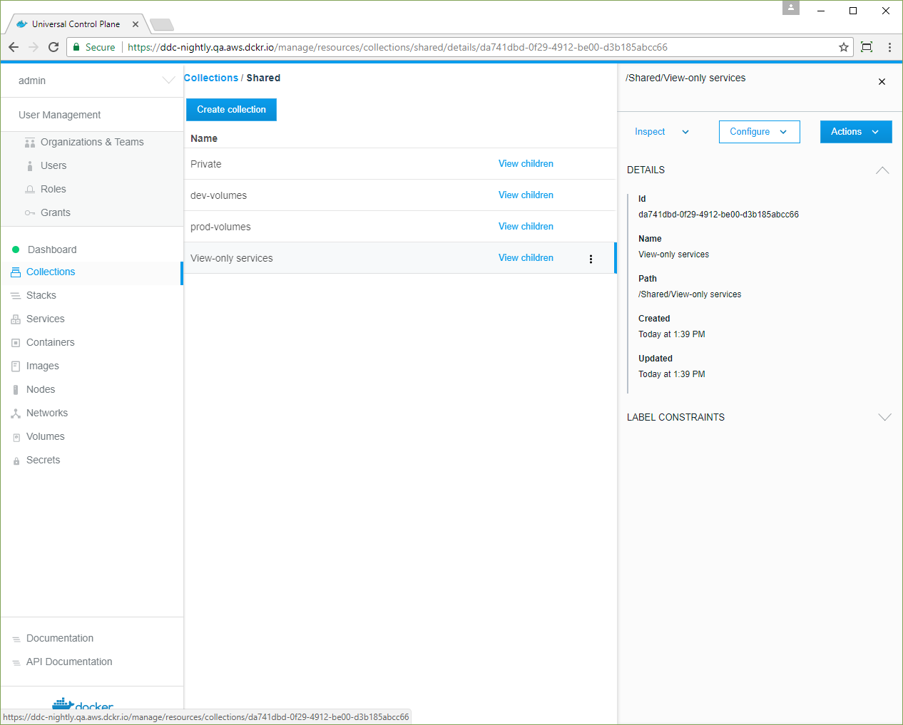 - Navigate to the Collections page to view all of the resource collections in the swarm.