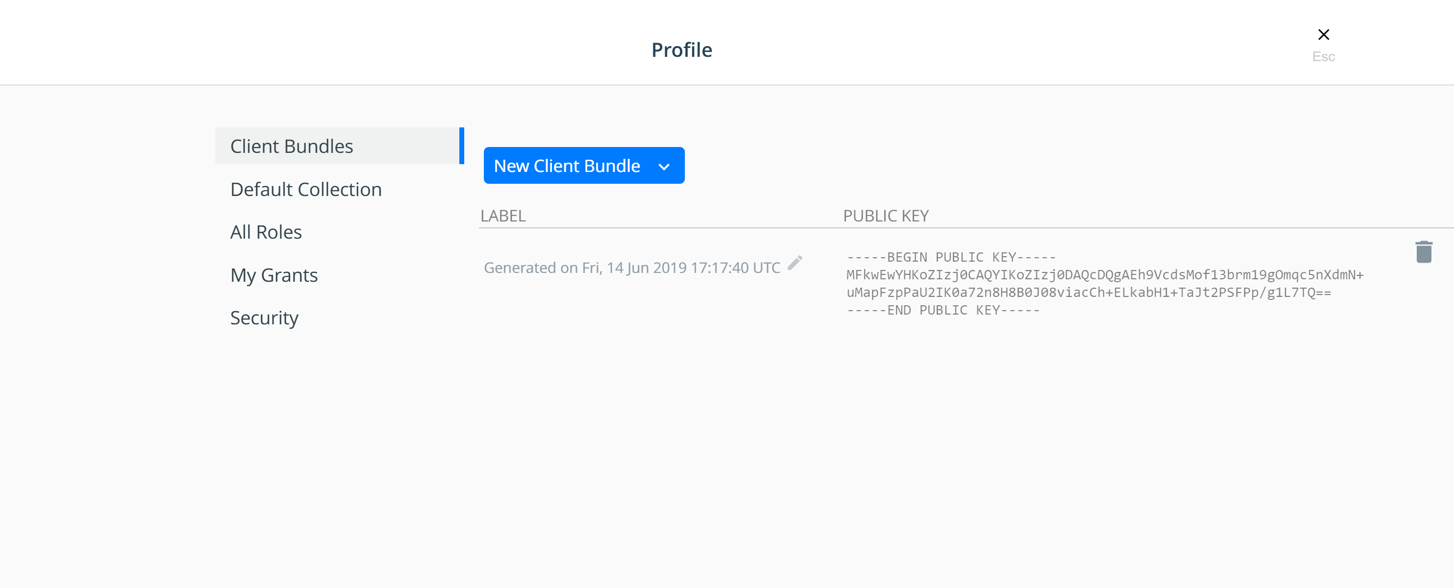 In the left pane, click Client Bundles and choose New Client Bundle to download the certificate bundle.