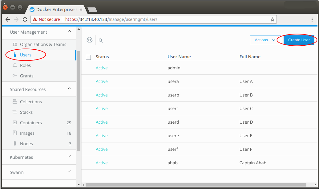 To use Docker EE's built-in authentication, you must create users manually.