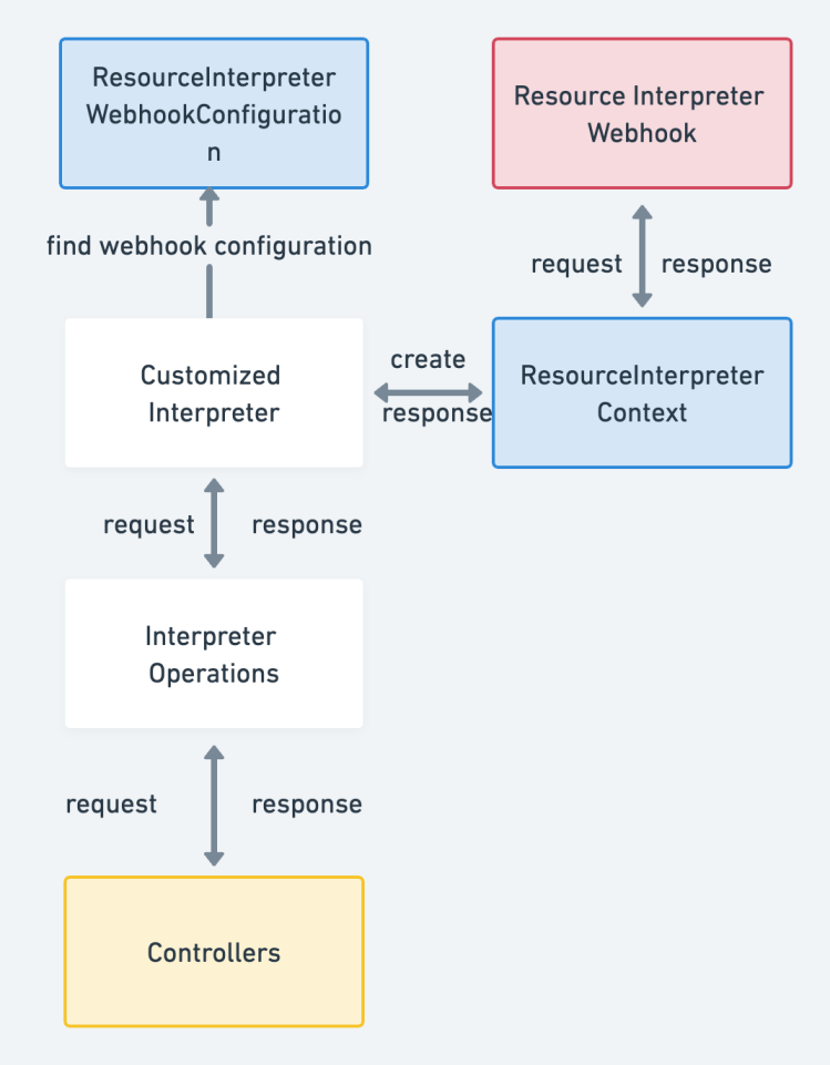 - Users can design Resource Interpreter Webhooks for specific custom resources to handle Interpreter Operations requests and perform dependency parsing. The process involves receiving these request operations and processing them accordingly. The specific process is as follows: