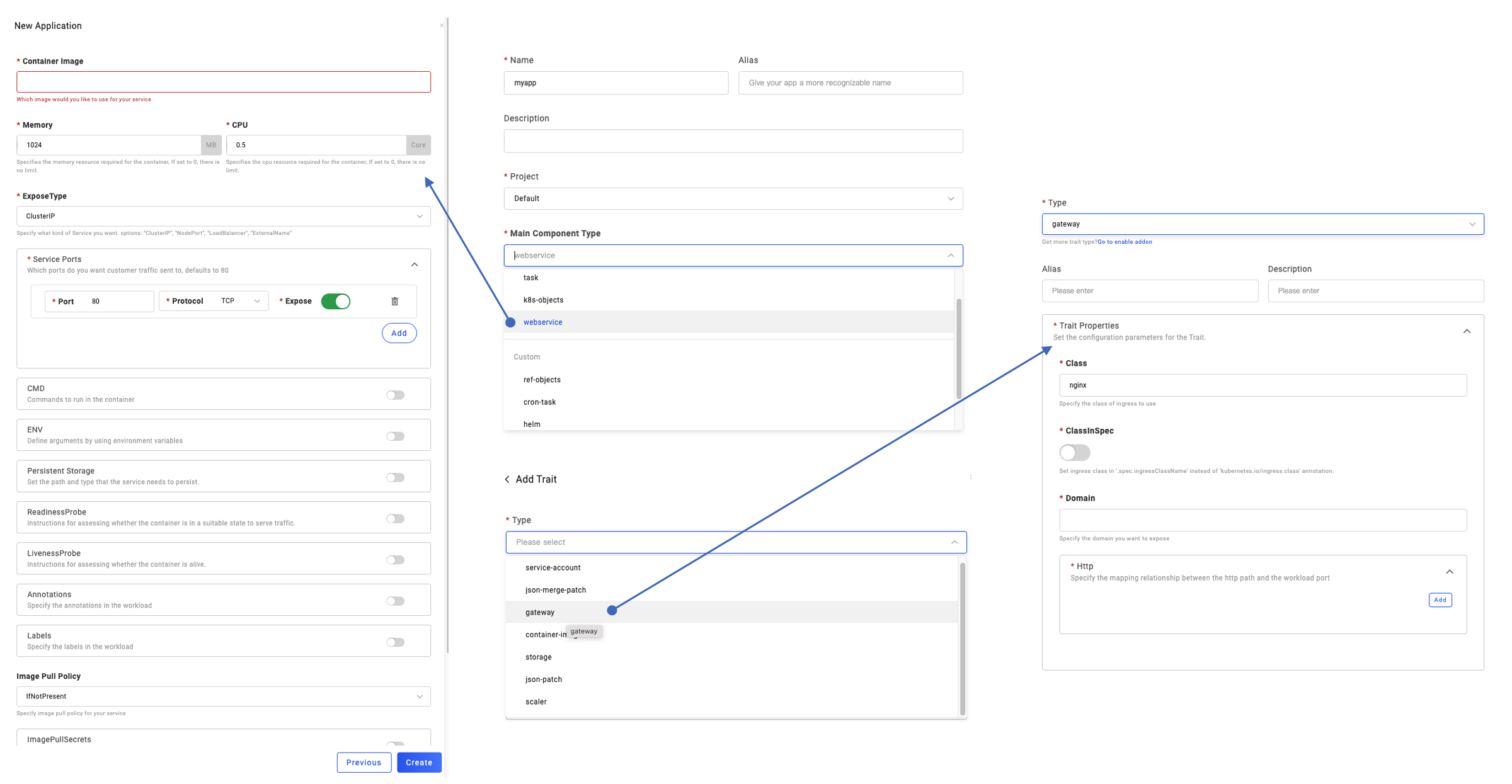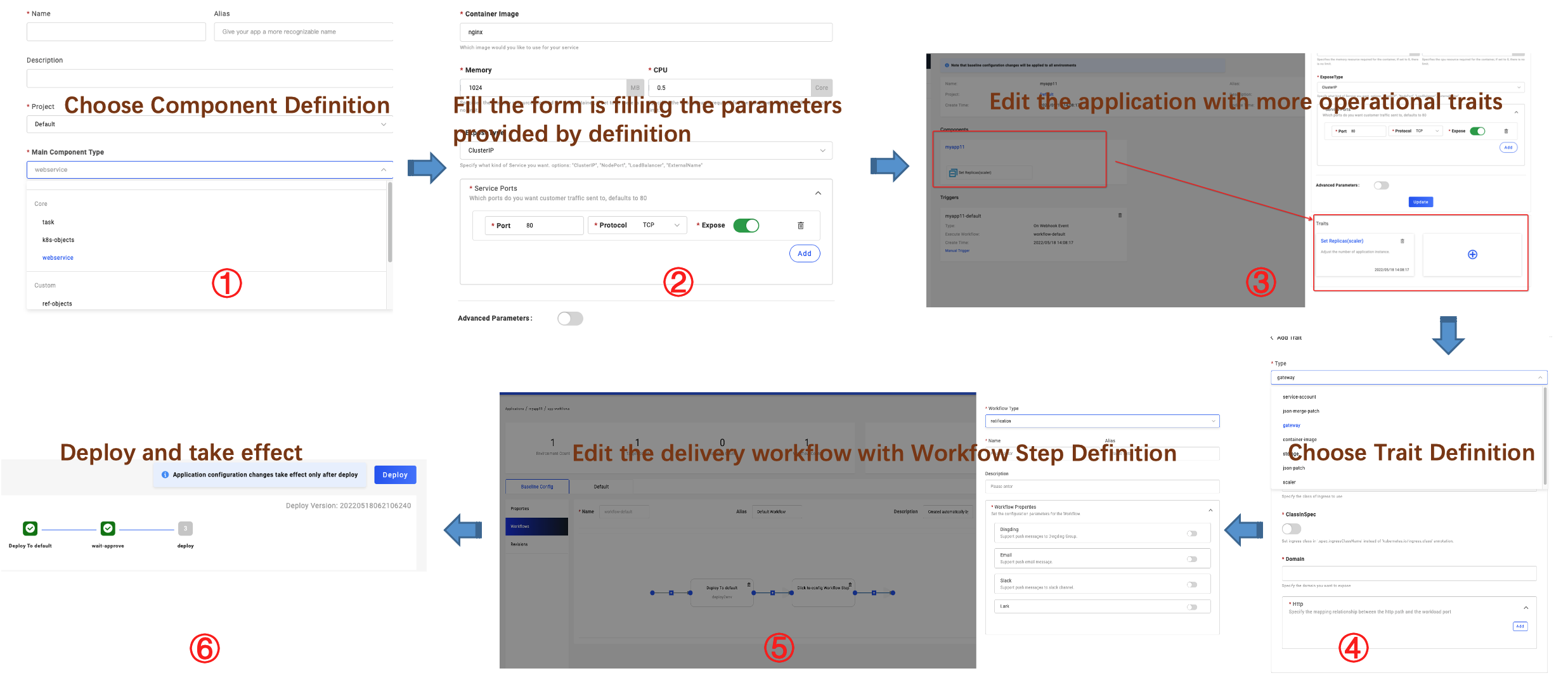 Finally, the UI console will compose the whole deployment plan in the format of OAM like below, then KubeVela controller will take care of the rest things:
