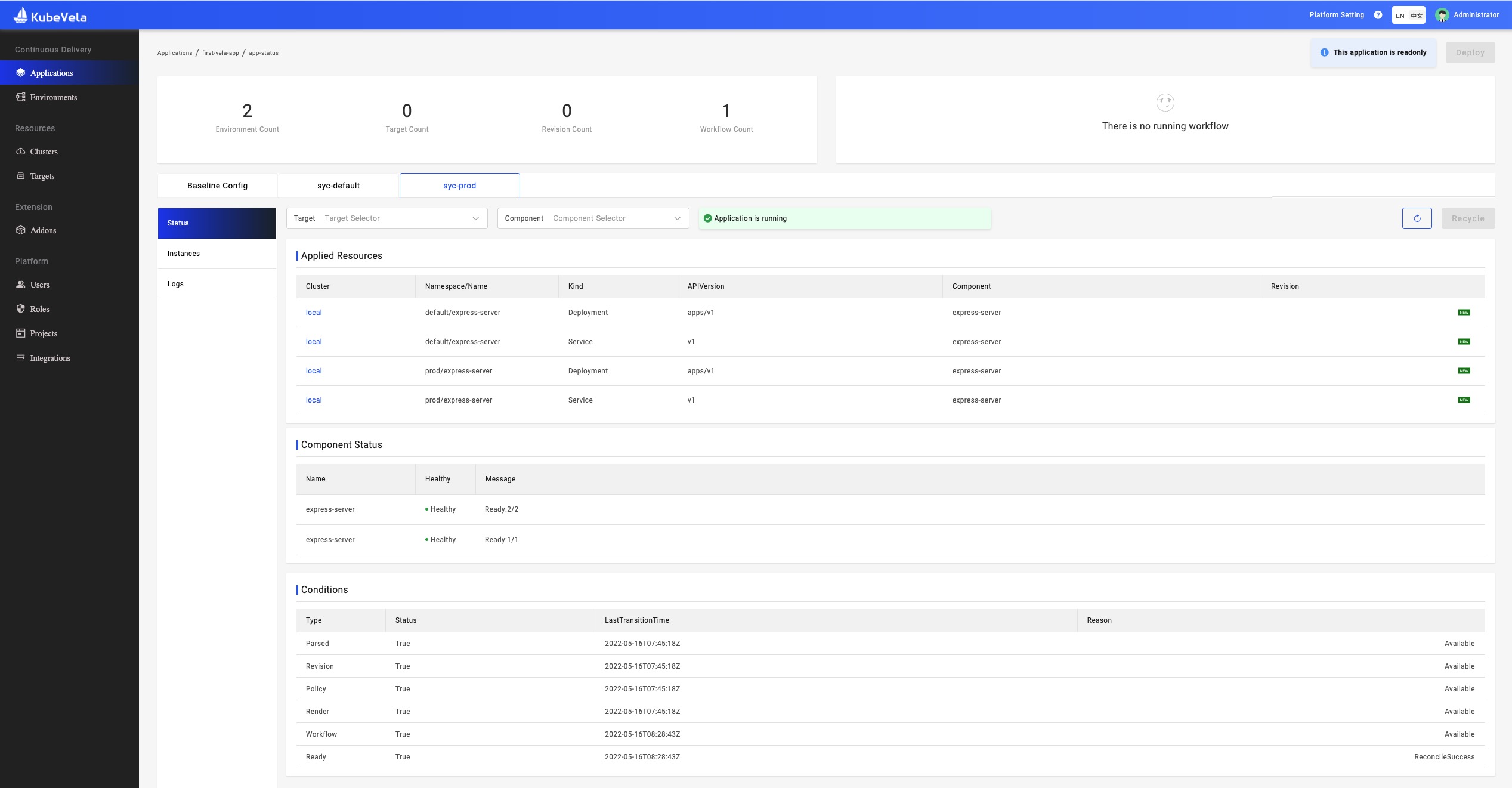 Before starting, please confirm that you've installed KubeVela and enabled the VelaUX addon according to the installation guide.