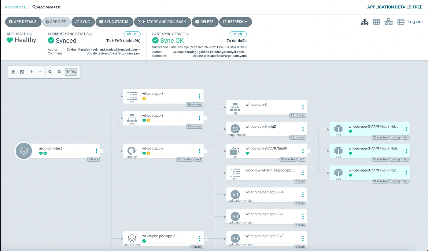 In this example, ArgoCD tracks native Kubevela application resources and its revision.