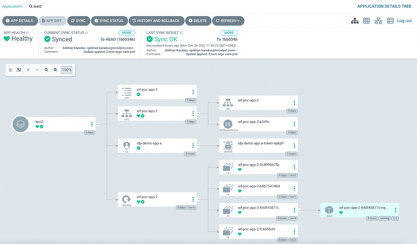 ArgoCD synced applications successfully and rendered kubernetes resources.