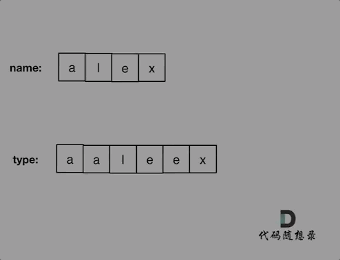 - 如果 name[i] 和 typed[j]相同,则i++,j++ (继续向后对比)