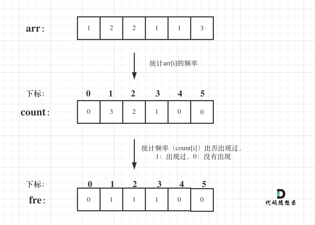 boolean[] flag = new boolean[1002]; // 标记相同频率是否重复出现