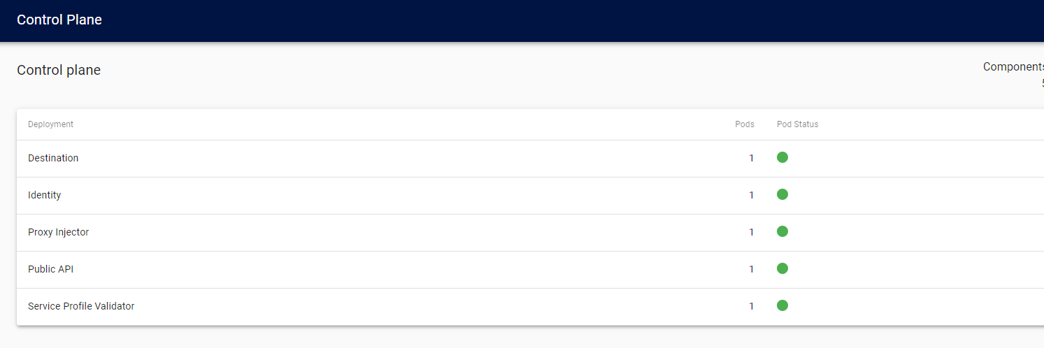 This change modifies the `/controlplane` dashboard page by removing viz components that are no longer part of the core control plane install. It also adds `Proxy Injector` to the list of components since that was missing from the list. Fixes #5898 Signed-off-by: Dennis Adjei-Baah <dennis@buoyant.io>  |