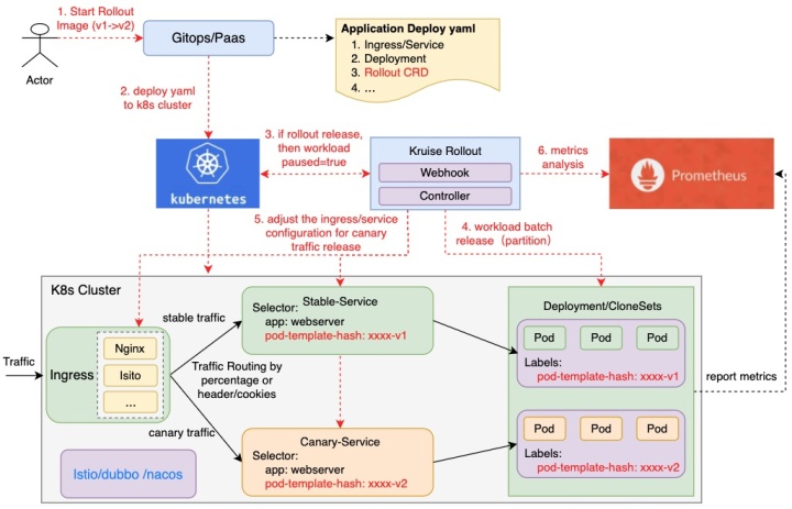 - Support Nginx/ALB/Istio traffic routing control during rollout.